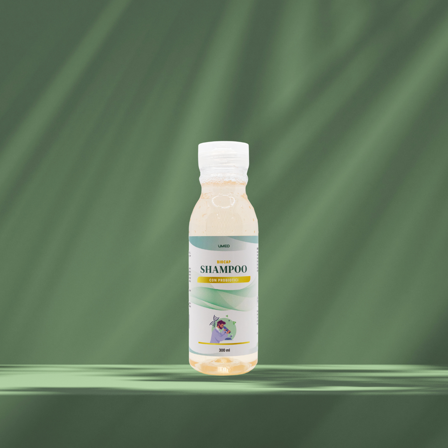 Shampoo arricchito di L. crispatus, S. boulardii, L. acdiphilus ed estratto di avena fermentata per l'equilibrio del microbioma cutaneo.