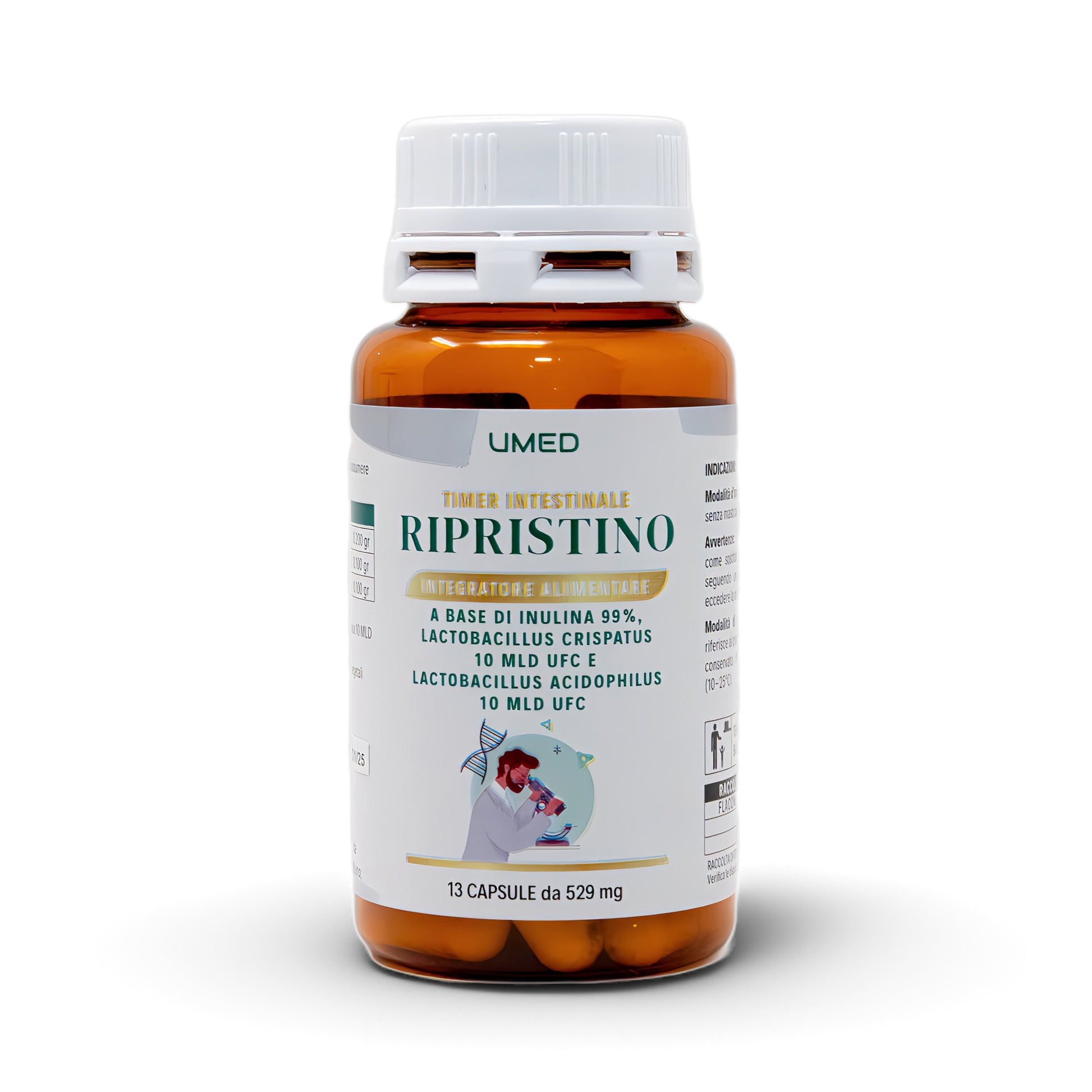 Crispatus, a base di Lactobacillus crispatus e acidophilus arrichito di Inulins. Favorisce l'equilibro della flora intestinale reintegrando i batteri buoni.